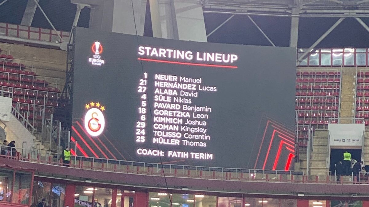 Galatasaray'ın 11'i yerine Galatasaray logosu olan bir tabloda Bayern Münih'in oyuncuları ekrana yansımıştı.