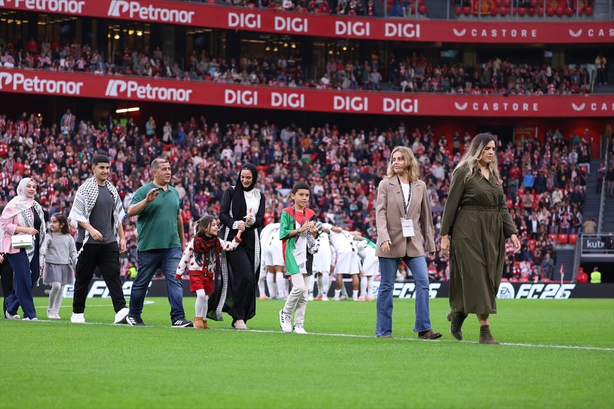 Athletic Bilbao Kulübü, "Soykırımı durdurun" başlığı altında duyurduğu etkinlik kapsamında, maç öncesinde kulübün elçilerinden Honey Thaljieh'e, Bask bölgesindeki bir grup Filistinli mülteciye ve Birleşmiş Milletler Yakın Doğu'daki Filistinli Mültecilere Yardım ve Bayındırlık Ajansı temsilcilerine atfen bir tören düzenlemişti.