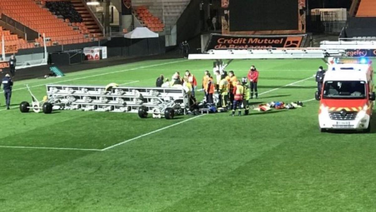 Rennes’in deplasmanda 3-0 kazandığı karşılaşmanın ardından takımlar stattan ayrılırken, sahanın bakımı için zemini incelemeye gelen çim görevlisinin işini yaptığı sırada üzerine projektör rampası çöktü.