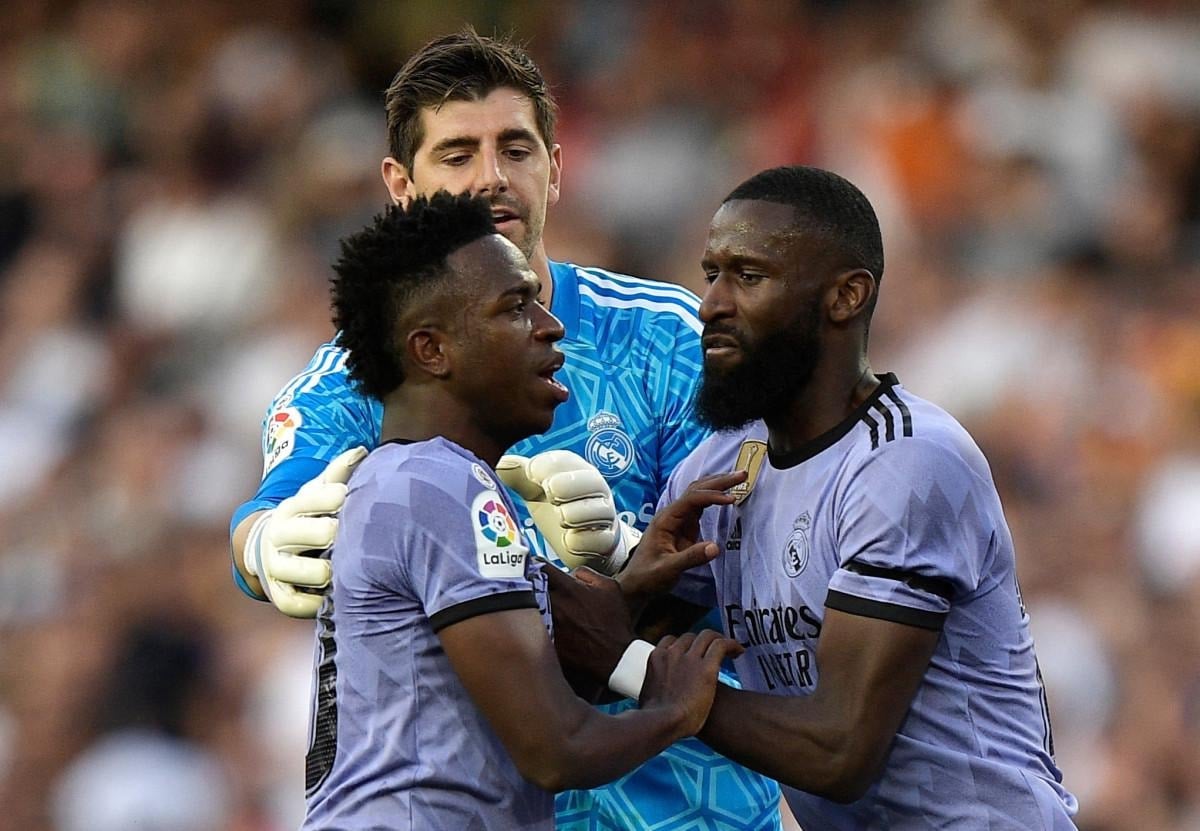 Real Madrid'in Brezilyalı futbolcusu Vinicius Junior, 71. dakikada Valencia tribünlerinden bir taraftarın kendisine ırkçı hakaret ettiği gerekçesiyle oyunu durdurdu.