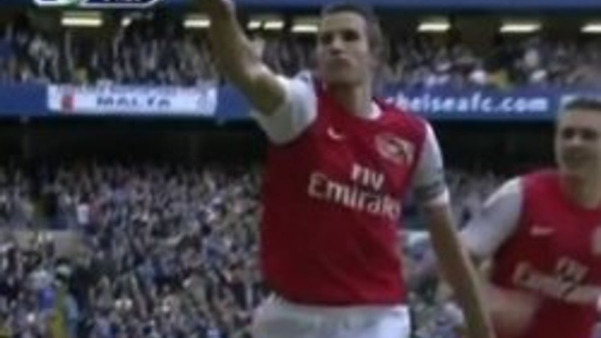 Premier Lig'de oynanan Arsenal'in deplasmanda Chelsea'yi 5-3 mağlup etttiği karşılaşmada takımı adına 3 gole imza atan Robin van Persie'nin üstün performansının yanı sıra beşinci gol sonrası yaptığı sevinçte İngiltere'de gündem oluşturdu.