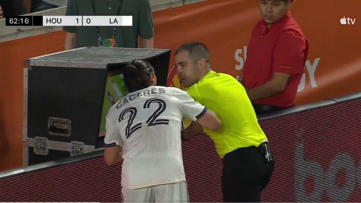 36 yaşındaki oyuncu, elini hakemin üzerine atarak pozisyonu izledi. Hakem, Caceres'in geldiğini fark etmesiyle yıldız oyuncuya sarı kart gösterdi.
