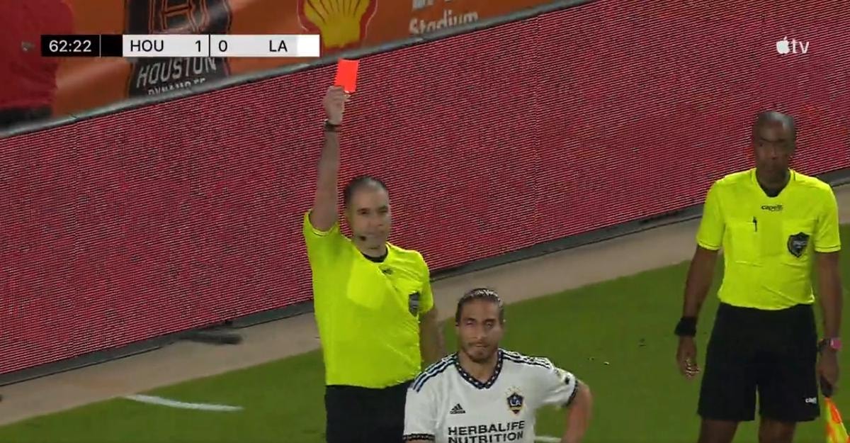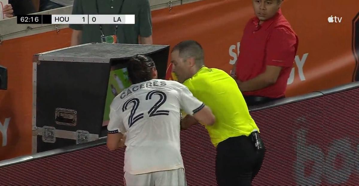 Hakem tarafından sarı kart ile cezalandıran Caceres, ikinci sarı kartını görmüş oldu. Böylelikle ikinci sarıdan kırmızı kart görerek oyundan atıldı. Los Angeles Galaxy, karşılaşmanın kalan dakikalarını 10 kişi tamamlamak zorunda kaldı.