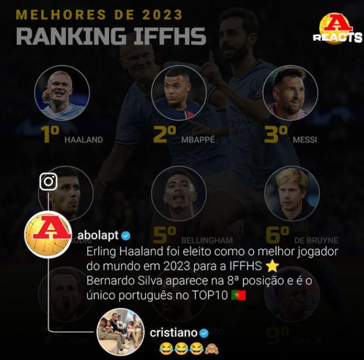 Portekizli isim, Abola'nın paylaştığı gönderiye 'kahkaha emojisi' atarak tepki gösterdi. 38 yaşındaki oyuncunun bu paylaşımı ise sosyal medyada çok konuşuldu.