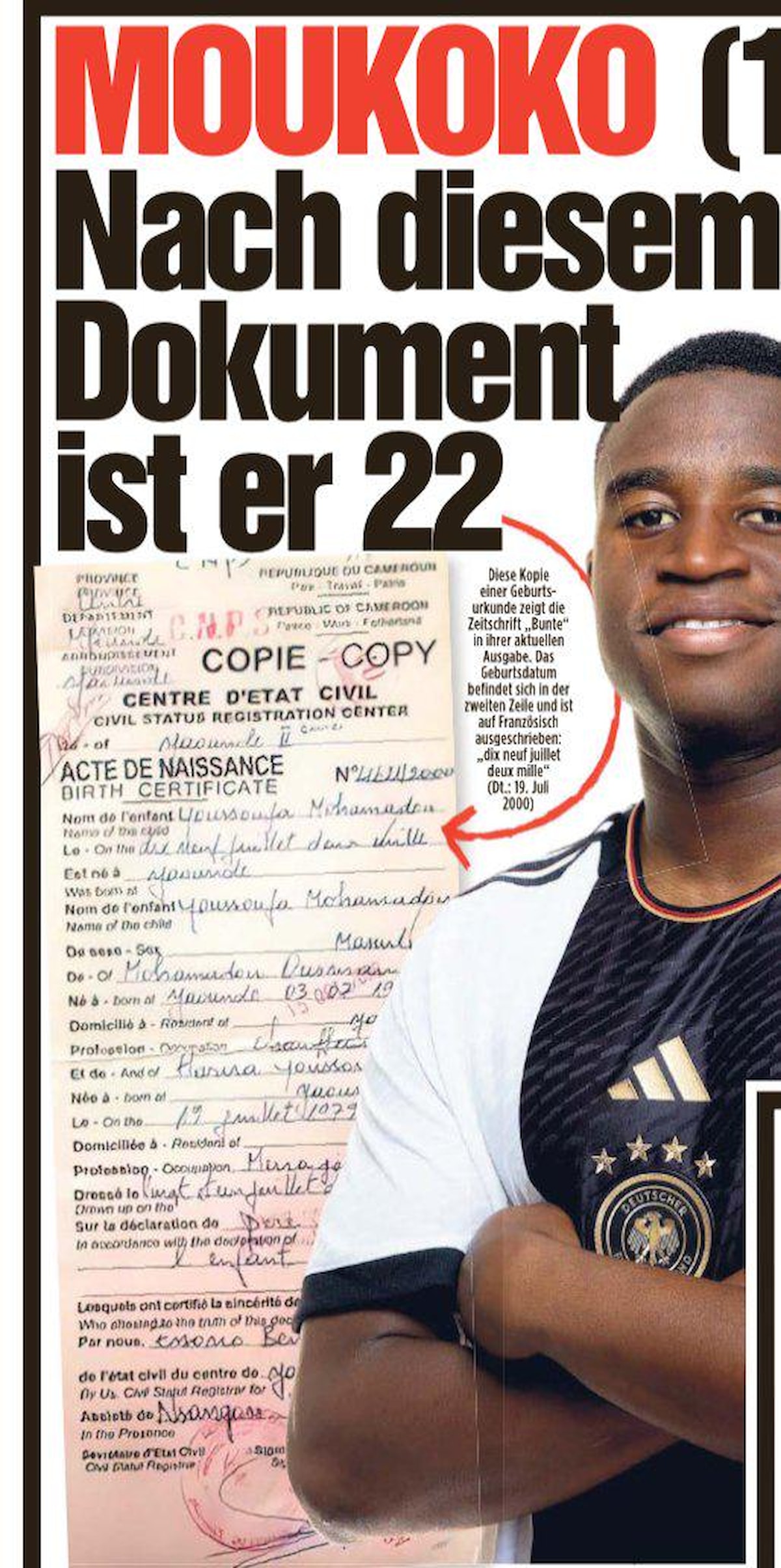 Bild'de, 18 yaşında olduğu bilinen Kamerun kökenli Alman yıldızın gerçek yaşı ile ilgili belge yayınlandı. Bu belge Almanya'da büyük tartışmaları beraberinde getirdi.