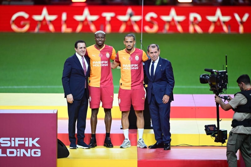 Galatasaray, Lazio maçı öncesi yeni transferler Victor Osimhen ve Leroy Sane için imza töreni düzenledi.