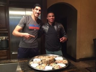 Enes Kanter, takım arkadaşı olan NBA yıldızı Russell Westbrook ile yaptığı maklubenin resimlerini paylaştı.