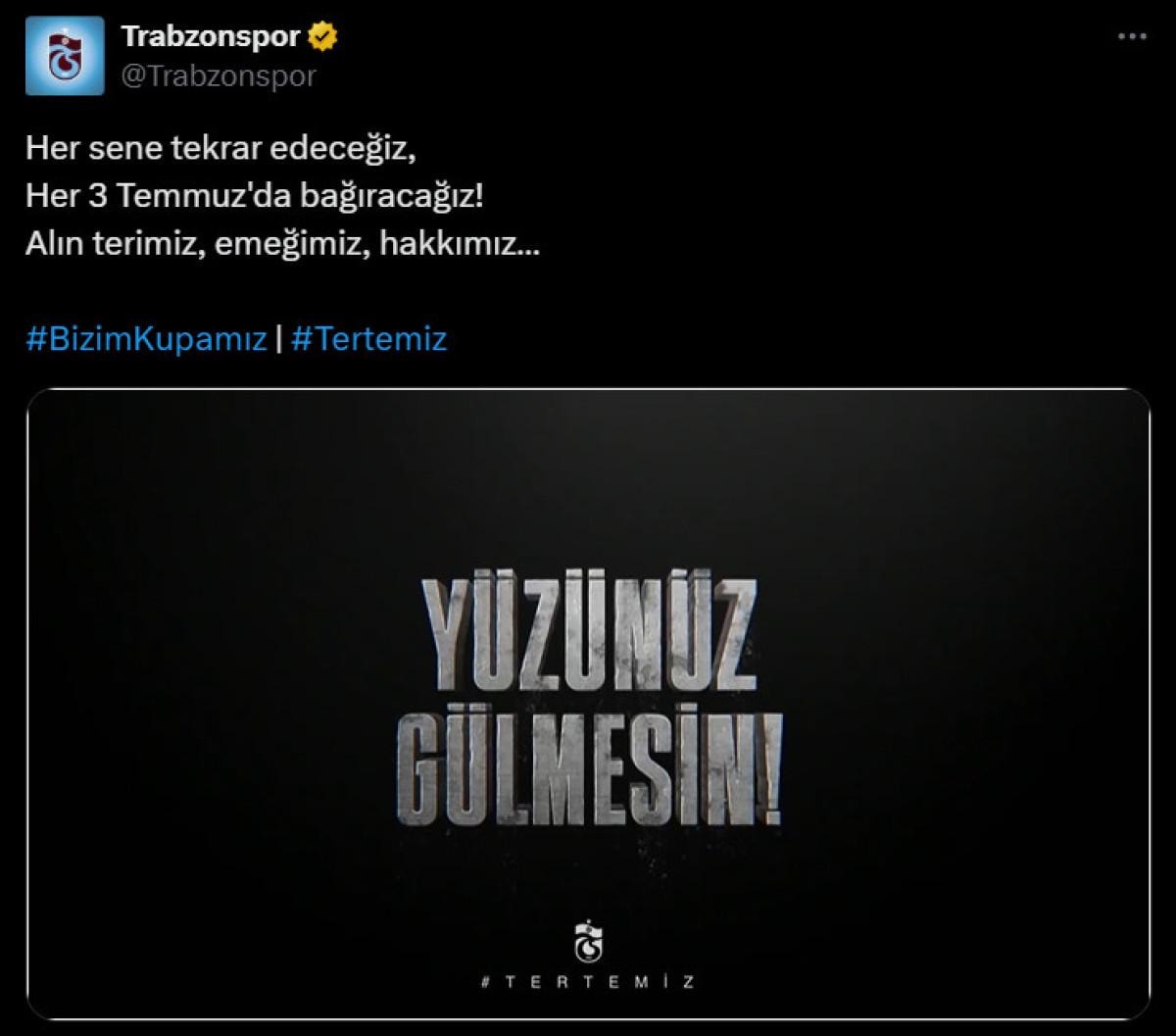 Trabzonspor'un açıklamasında ise "Her sene tekrar edeceğiz. Her 3 Temmuz'da bağıracağız! Alın terimiz, emeğimiz, hakkımız…" denildi.
