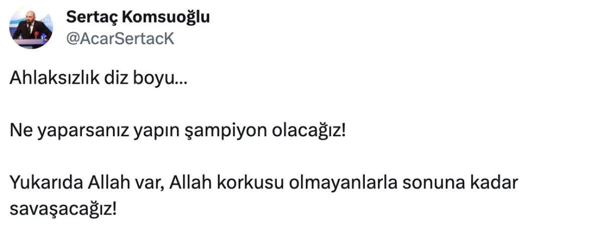 Ahlaksızlık diz boyu… Ne yaparsanız yapın şampiyon olacağız! Yukarıda Allah var, Allah korkusu olmayanlarla sonuna kadar savaşacağız!