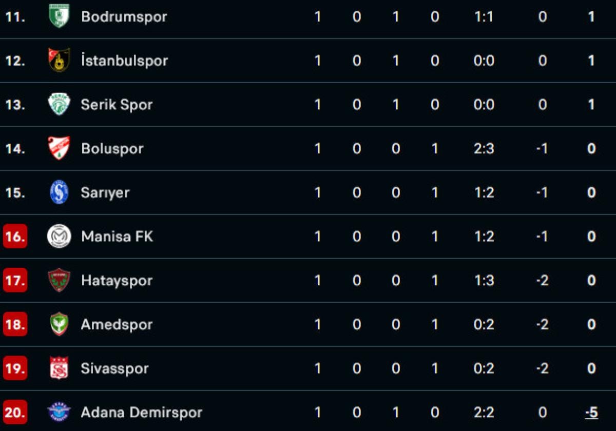 1. Lig'de 1. hafta müsabakaları, bugün oynanan tek maçla tamamlandı.