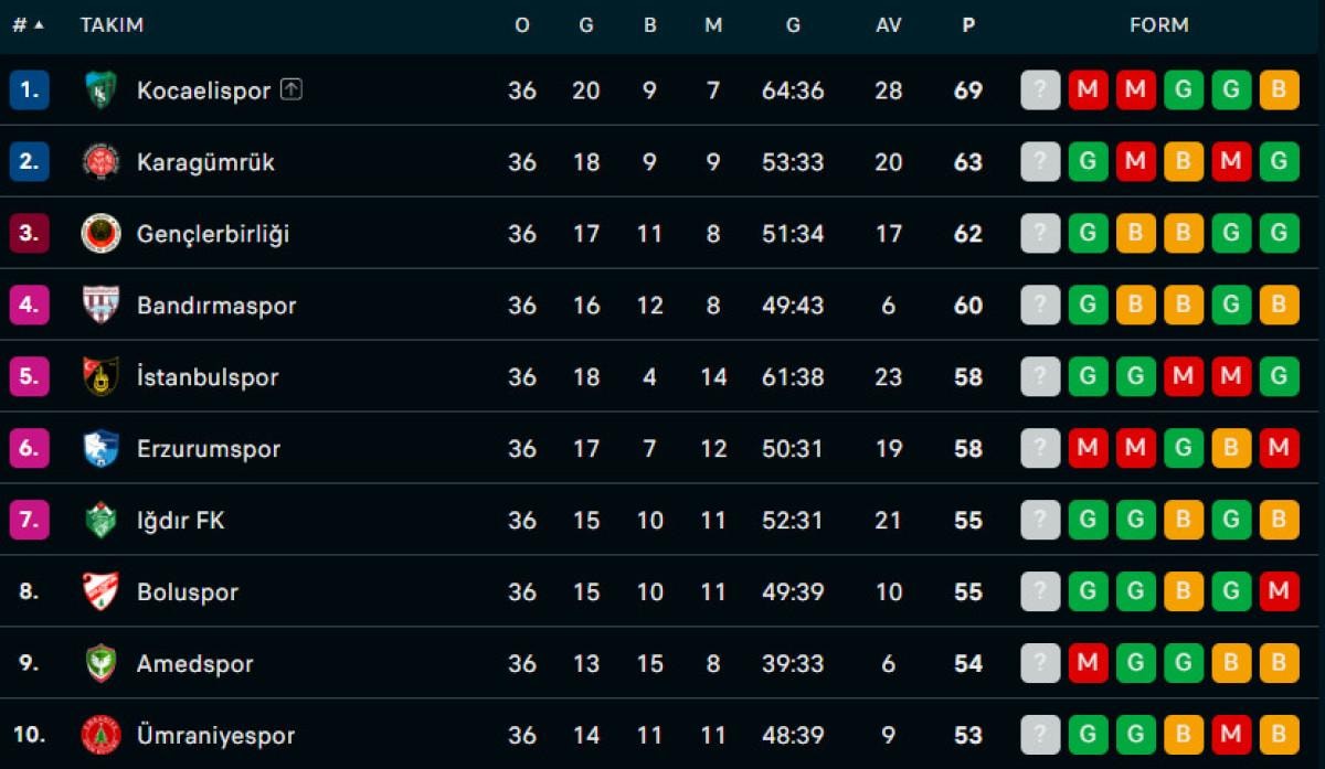1. Lig'in 36. haftasında Kocaelispor ile Boluspor karşı karşıya geldi.