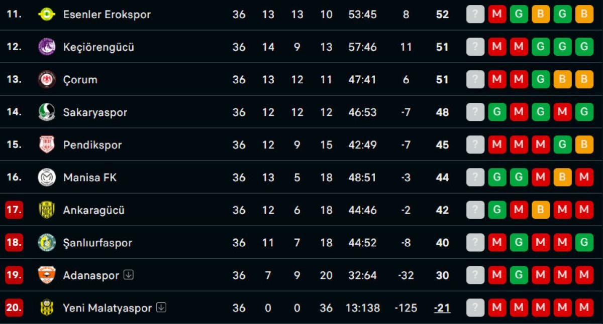 Üst ve alt sıraları yakından ilgilendiren 10 maçın ardından ligde bitime iki hafta kala son durum şekillendi.