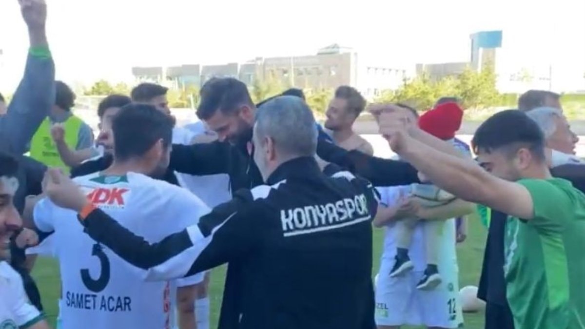 Fatsa Belediyespor maçı sonrasında futbolcular, teknik ekip, 1922 Konyaspor yönetimi ve taraftarlar ligde kalmayı oyun havası eşliğinde oynayarak kutladı.