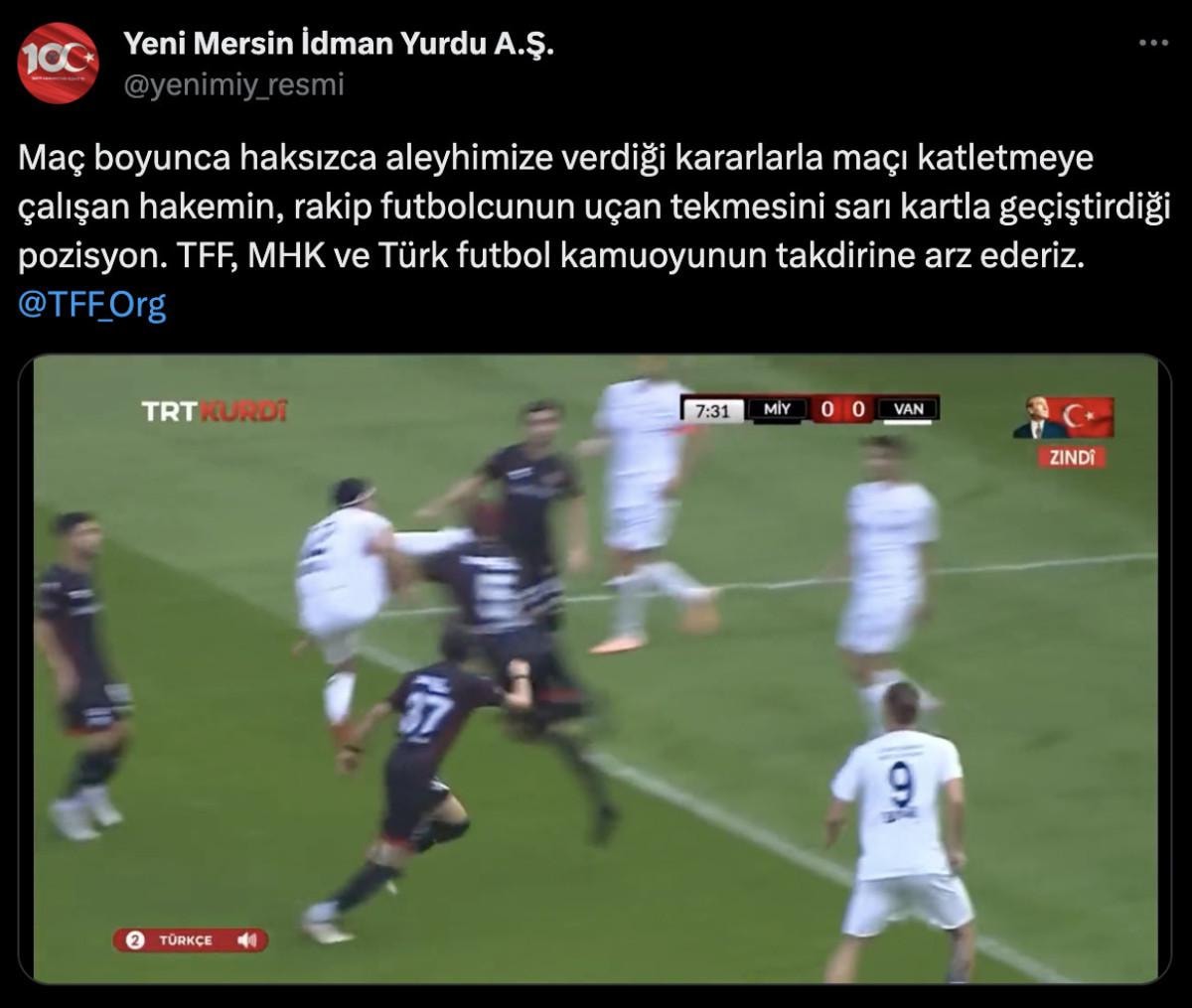 Futbolseverler sosyal medyada söz konusu karara isyan ederken, Yeni Mersin İdman Yurdu kulübü de konuyla ilgili paylaşım yaptı.
