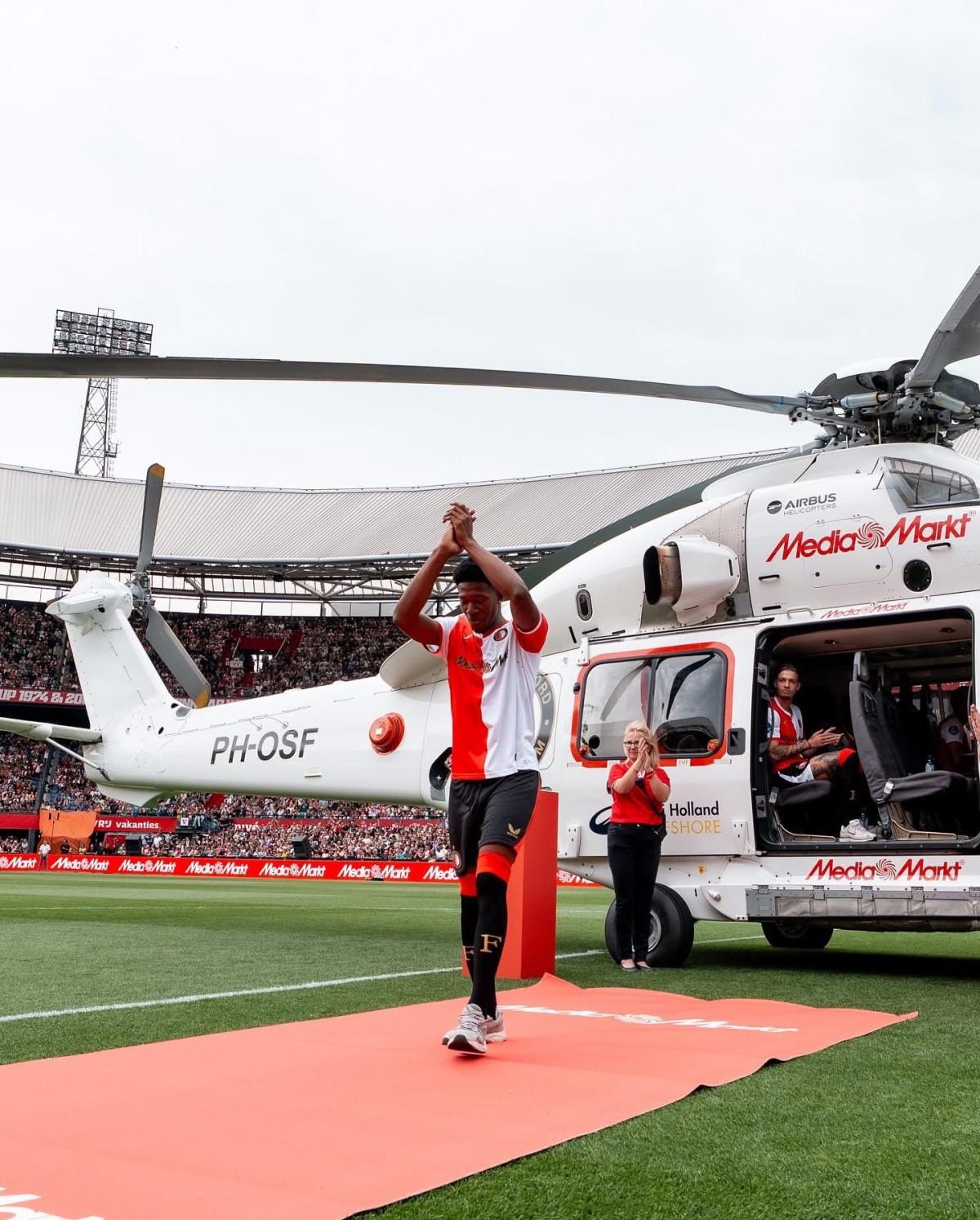 Hollanda ekibi, düzenlediği organizasyonla yeni transferlerini helikopterle stadyumun ortasına indirdi.