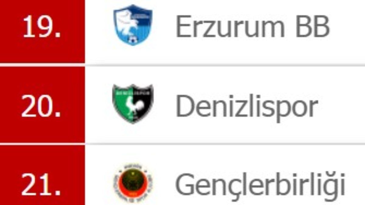 Kurallar gereği 4 takımın düşeceği Süper Lig'de, son 4 sırada Başakşehir, Erzurumspor, Denizlispor ve Gençlerbirliği yer alıyor.