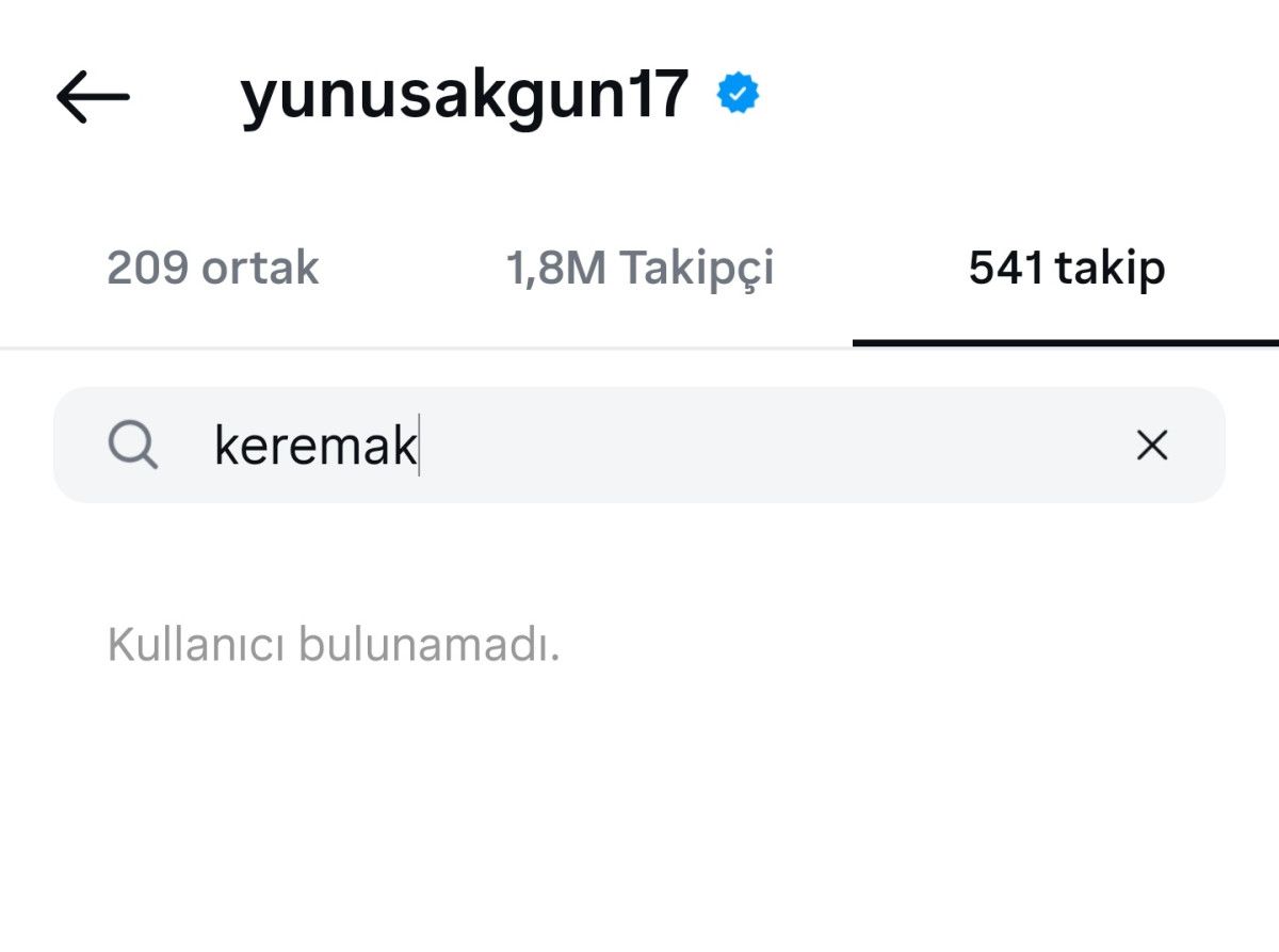 Bu hareketin ardından, Galatasaray'da birlikte forma giyen ve yakın dostları olan Yunus Akgün ile Abdülkerim Bardakcı da Kerem'i Instagram'da takipten çıkardı.