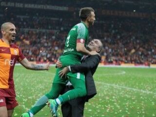 Maç sonu büyük bir sevinç yaşayan Albayrak, mutluluğunu Muslera'yı kucağına alarak gösterdi.