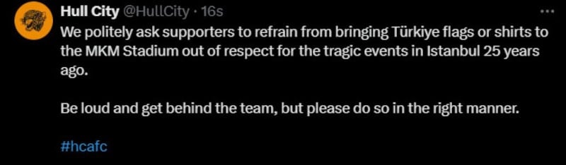 Hull City yaptığı paylaşımda, şu ifadeleri kullanmıştı: