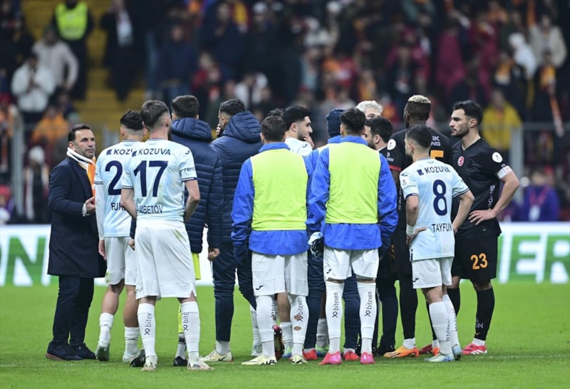 "Türkiye Süper Lig'de Galatasaray ile Adana Demirspor maçında konuk ekipteki futbolcular, aniden sahayı terk ederek soyunma odasına yöneldi.