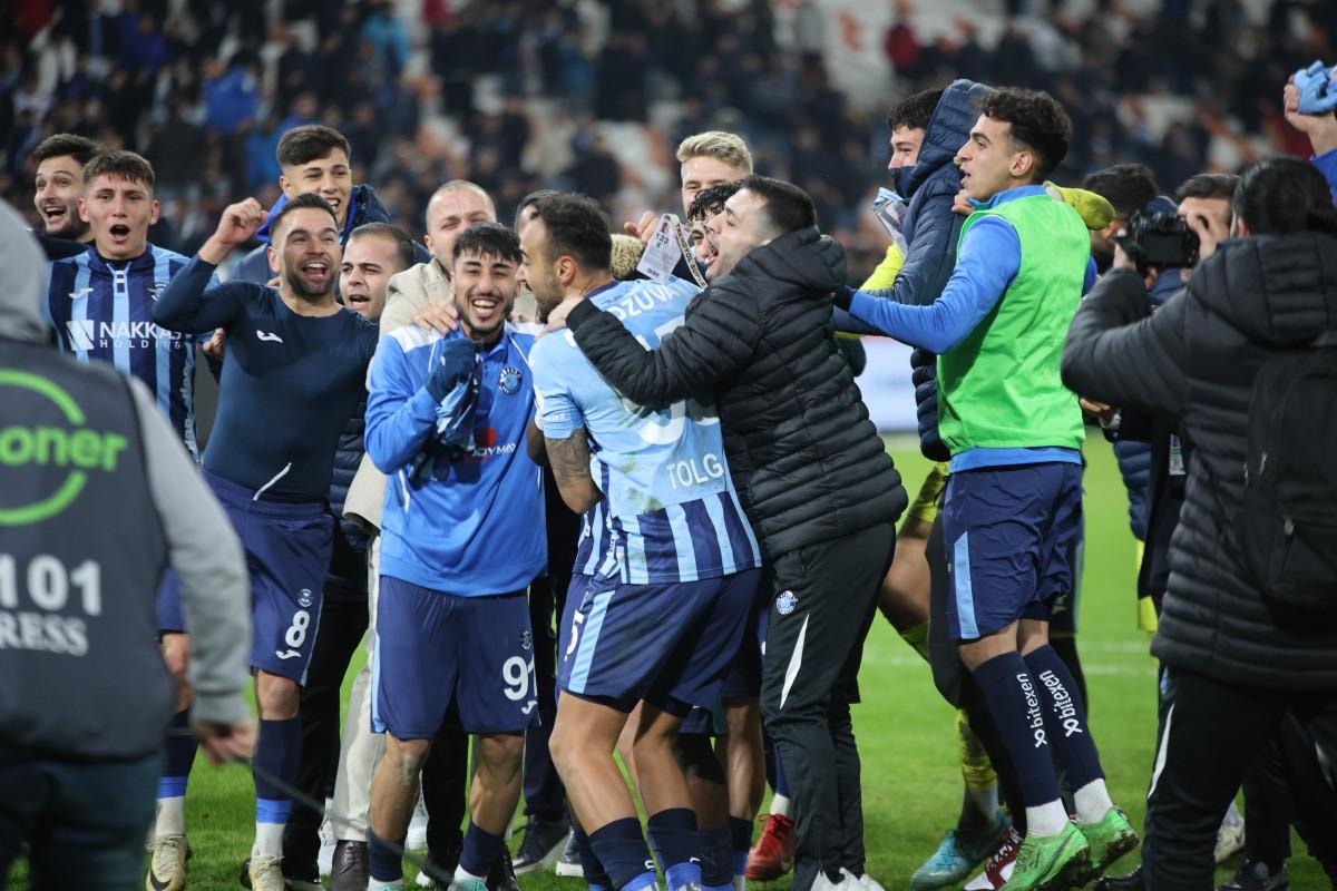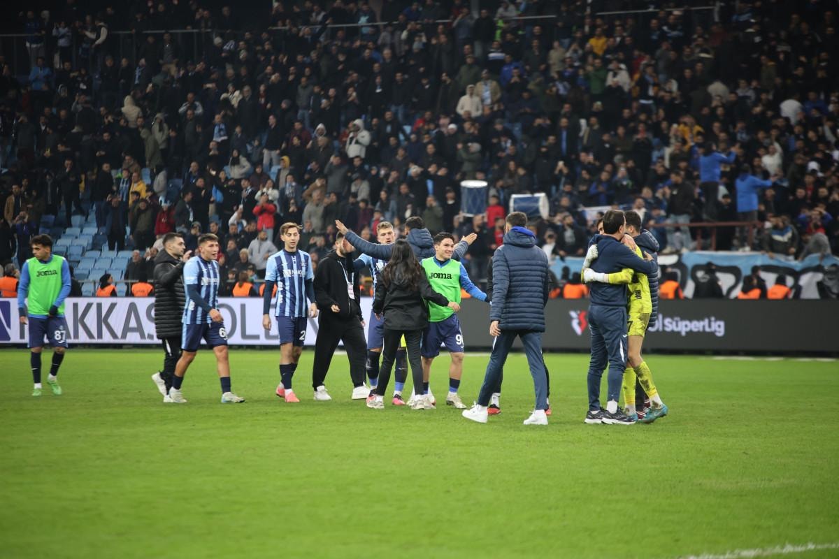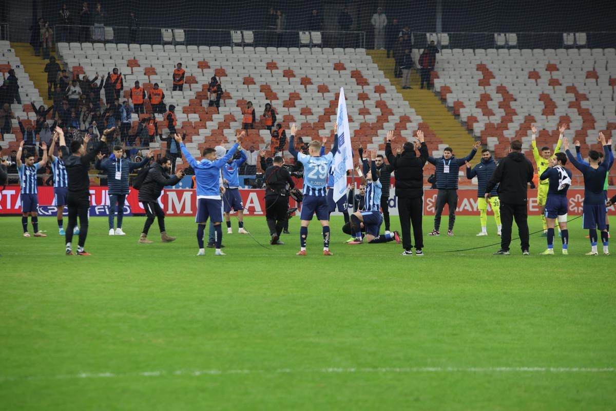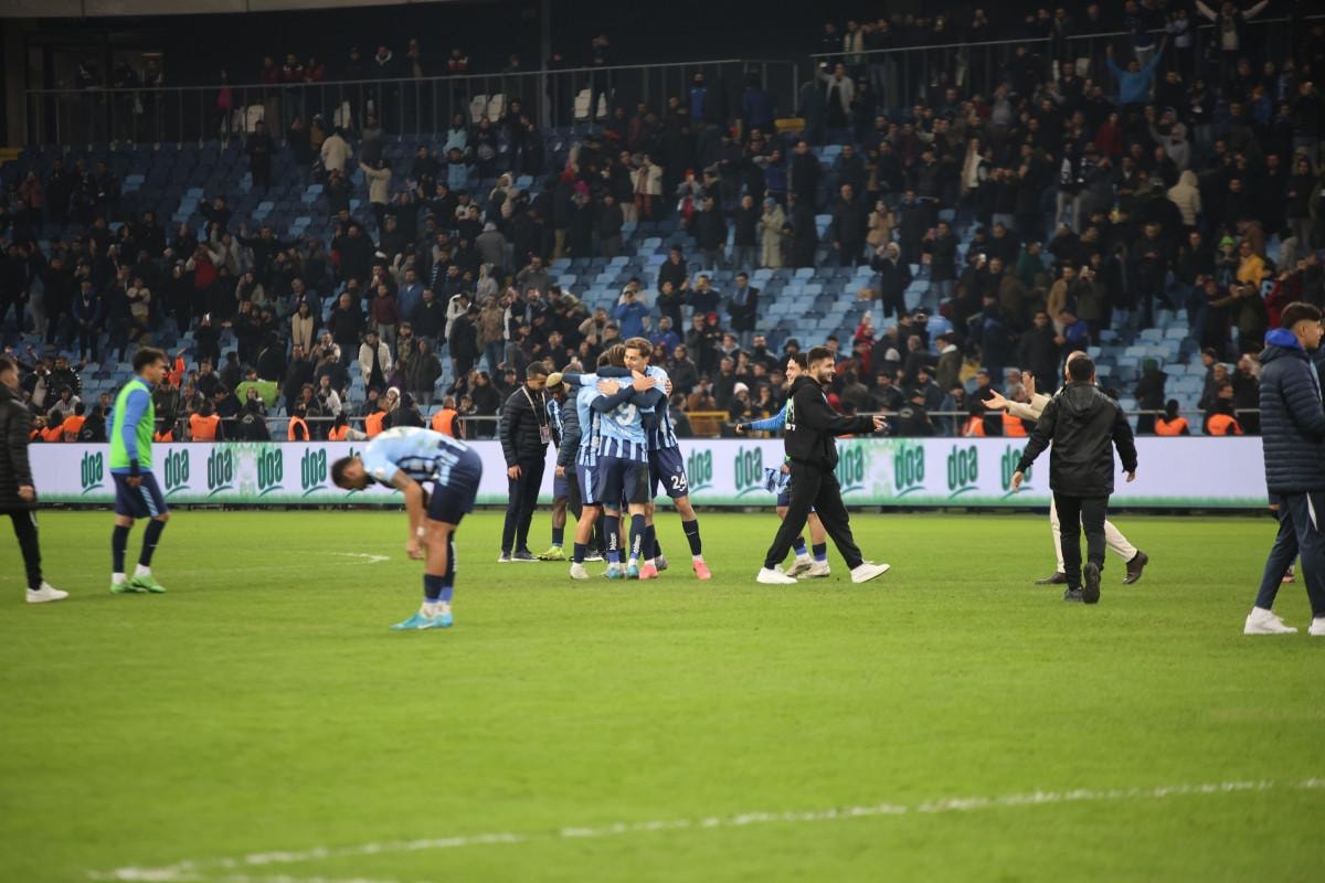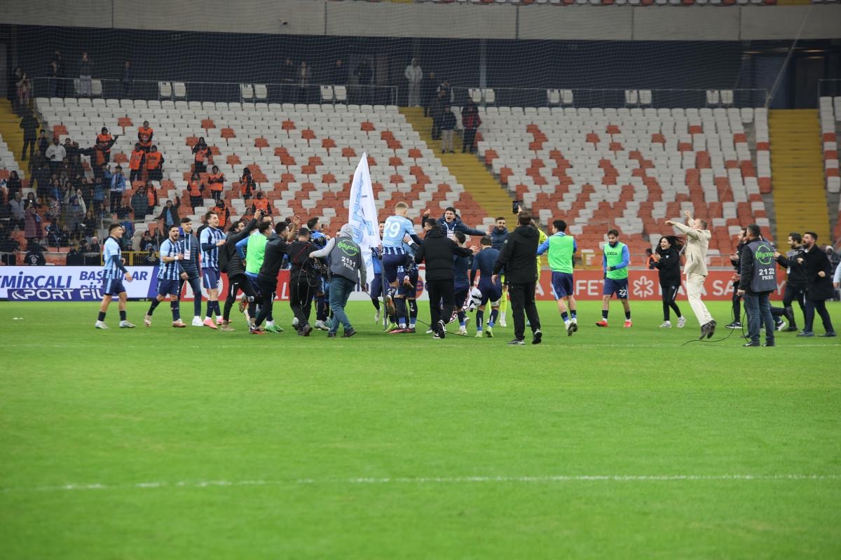 Maçın bitiş düdüğüyle birlikte sahada Adana Demirsporlu oyuncuların sevinci başladı.