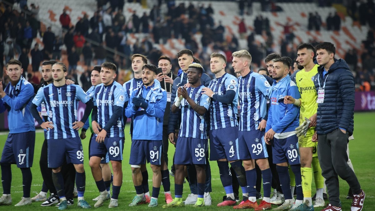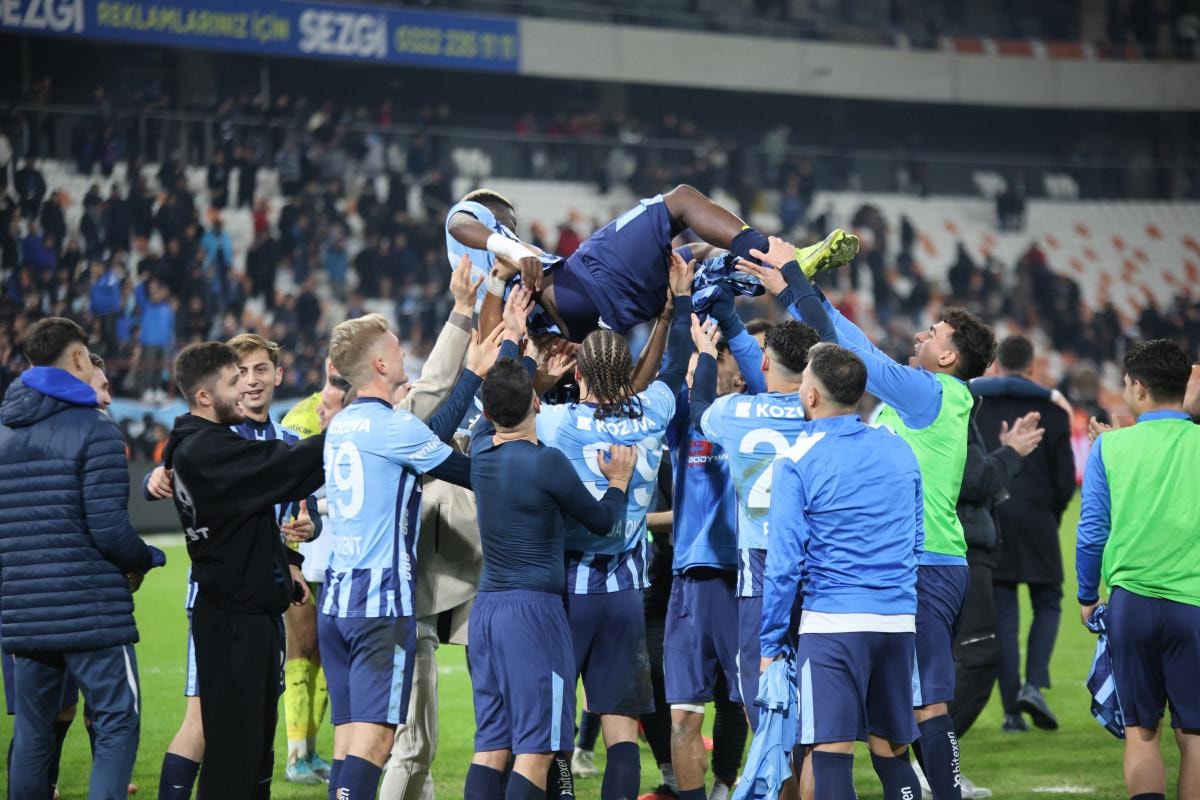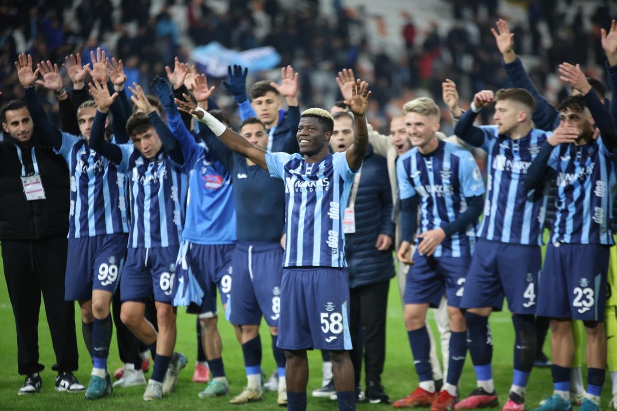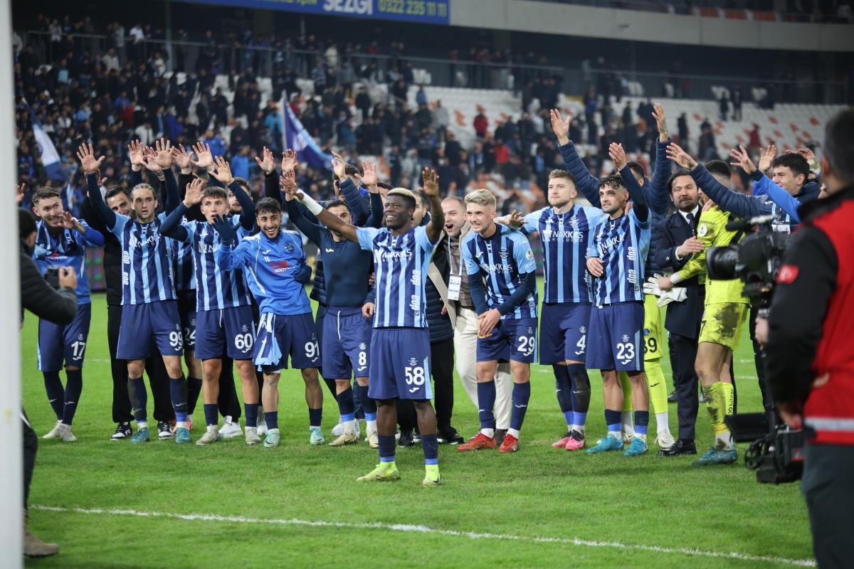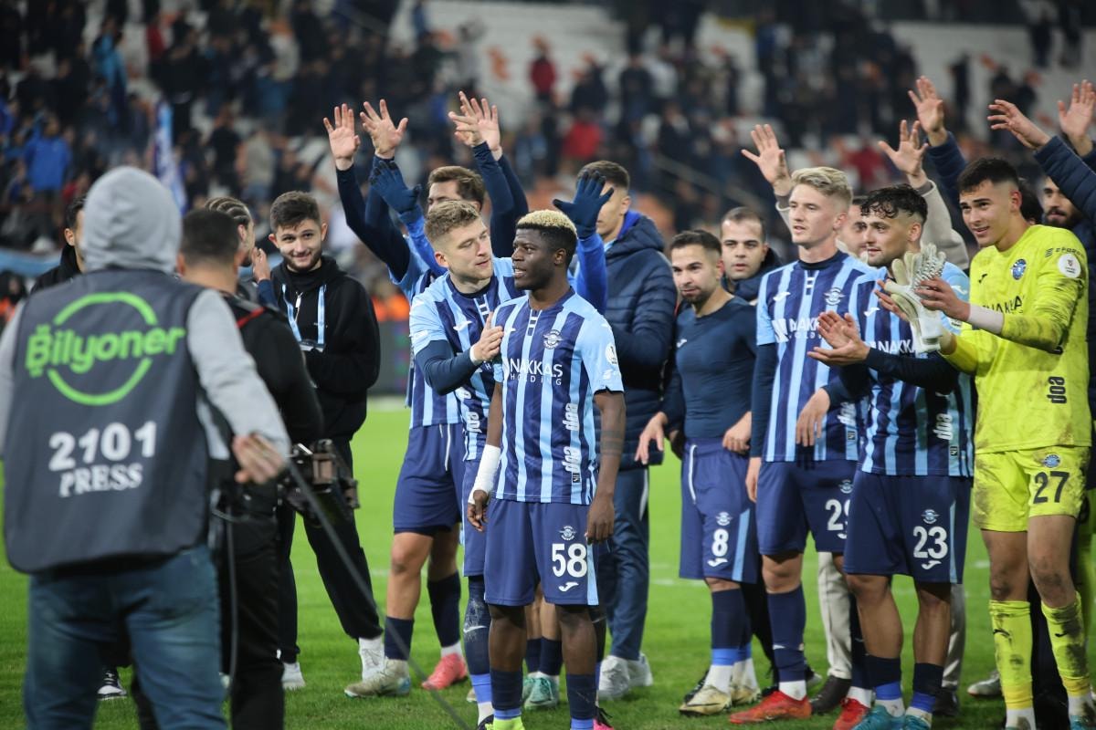 Maçın bitiş düdüğüyle birlikte sahada Adana Demirsporlu oyuncuların sevinci başladı.