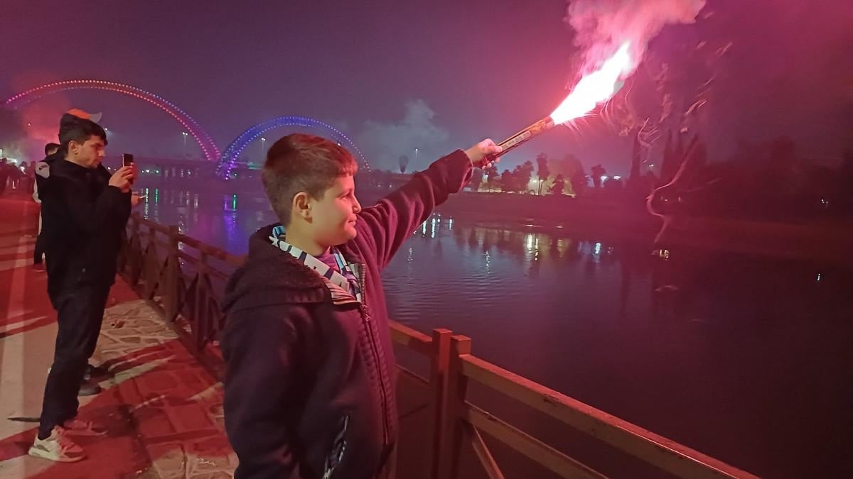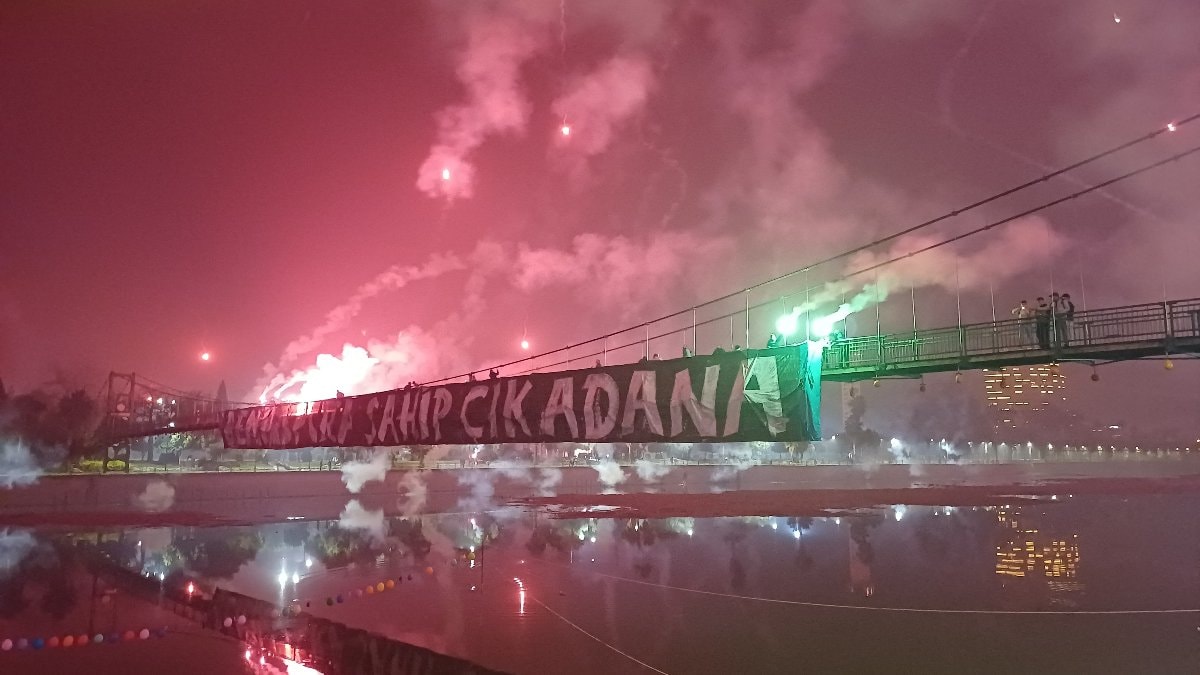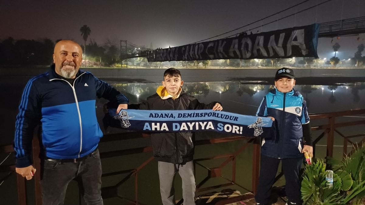 Taraftarlar burada "Demirspor’a sahip çık Adana" yazılı pankartı açarak şampiyonluk tezahüratları yaptı.