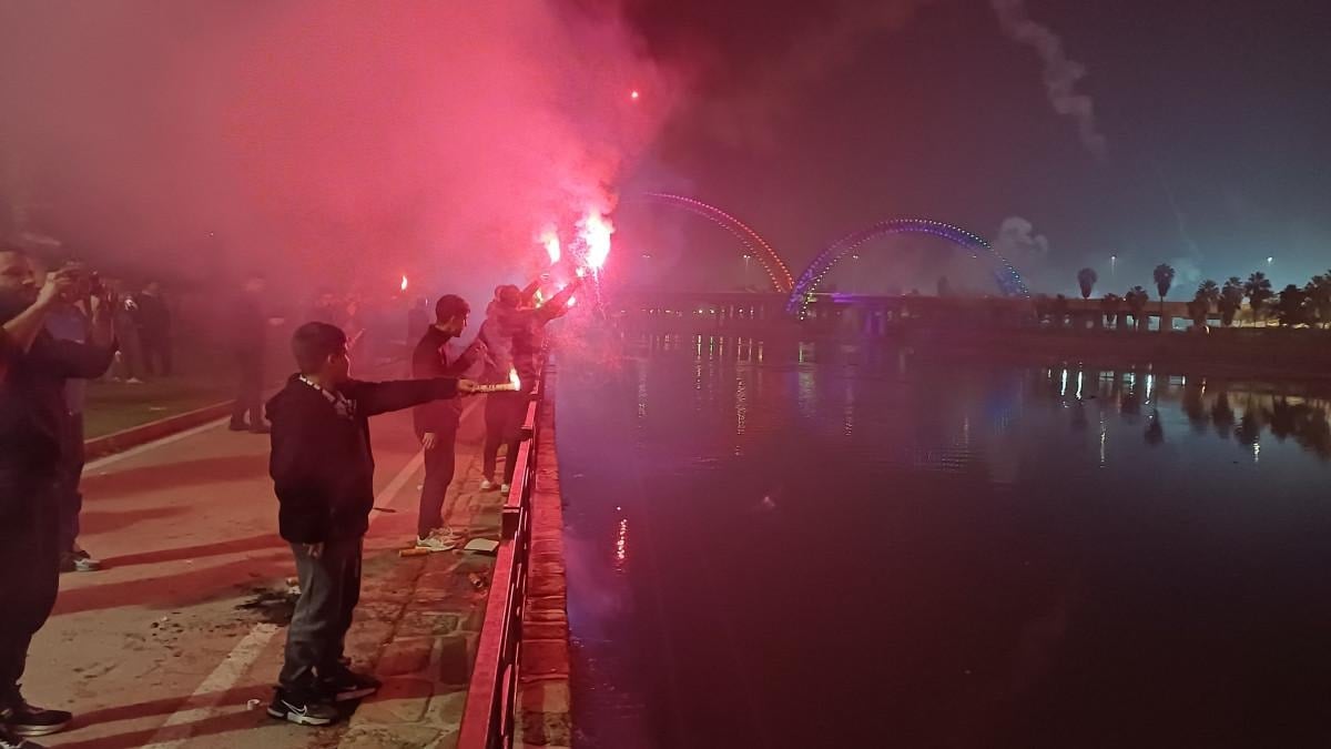 Meşaleler de yakan taraftarlar, bir süre sonra dağıldı.