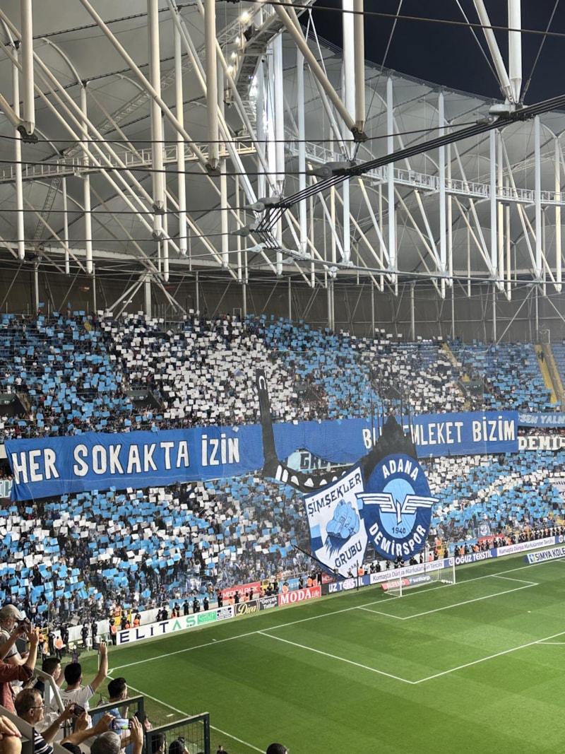 Adana Demirspor taraftarı, Galatasaray'la oynanan Süper Lig maçı öncesinde Yeni Adana Stadyumu'nun tribünlerinde koreografi gerçekleştirdi.