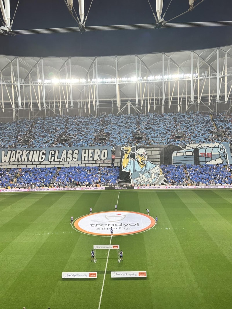Mavi-lacivertlilerin ev sahipliğinde Yeni Adana Stadyumu'nda oynanan müsabakanın öncesinde taraftarlar büyüleyici görüntülere imza attı.