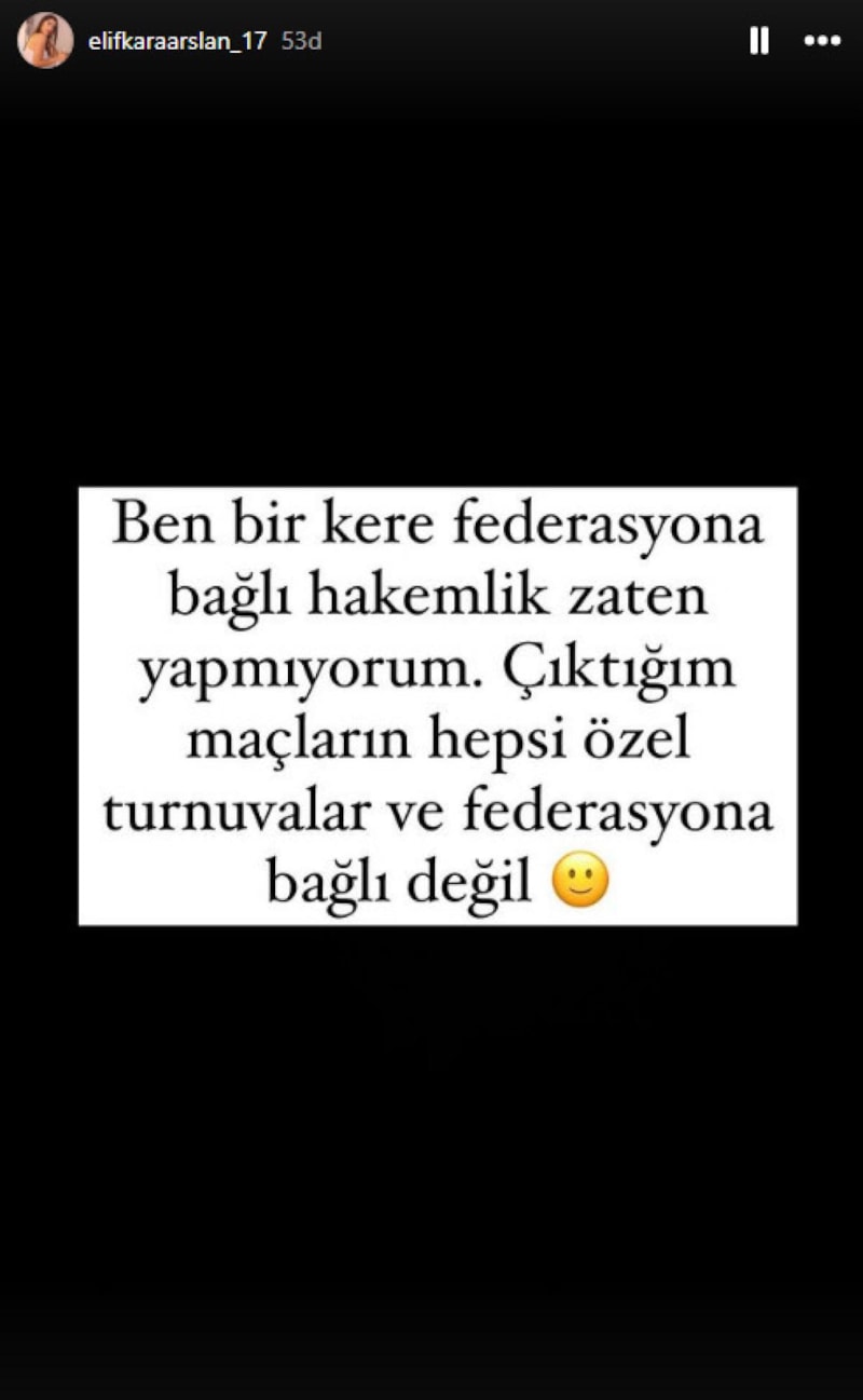 Ben bir kere federasyona bağlı hakemlik zaten yapmıyorum. Çıktığım maçların hepsi özel turnuvalar ve federasyona bağlı değil.