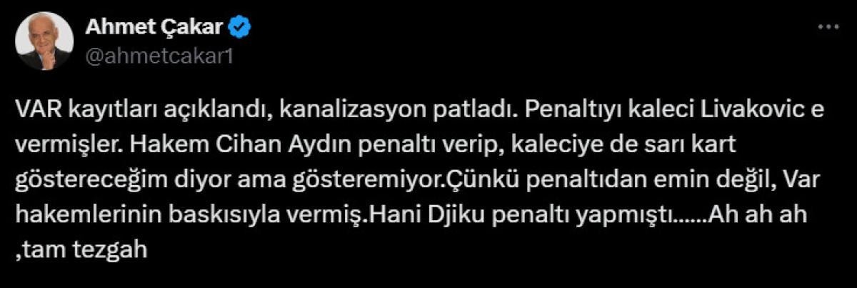 İşte Ahmet Çakar'ın paylaşımı: