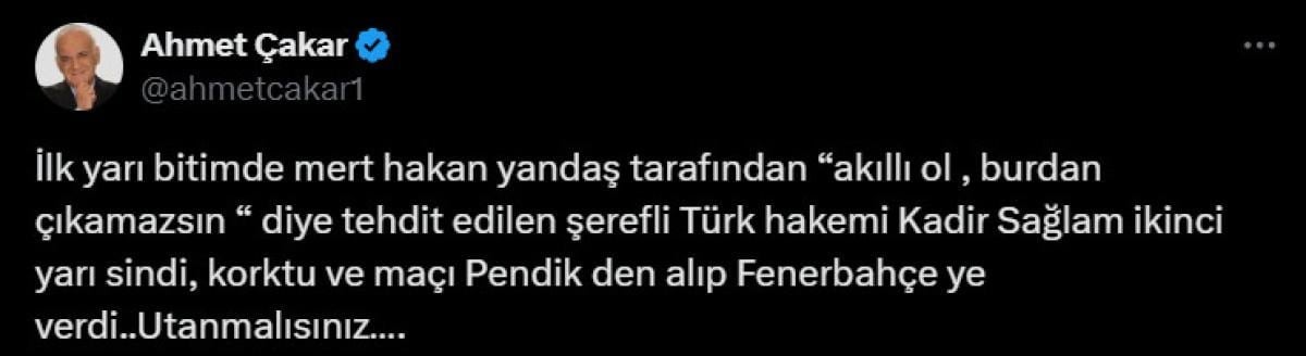 Eski hakem ve futbol yorumcusu Ahmet Çakar, ise bu konu hakkında çarpıcı bir paylaşıma imza attı.