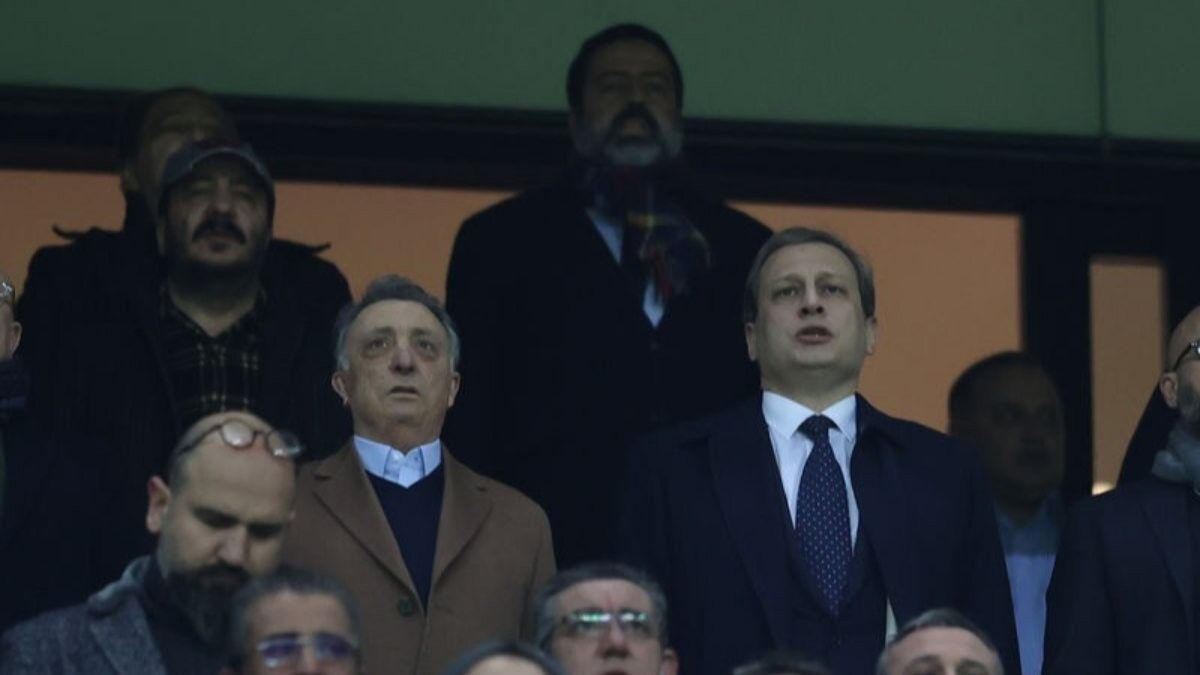 Yöneticileriyle birlikte Galatasaray Stadyumu'na gelen Beşiktaş Başkanı Ahmet Nur Çebi, derbinin ilk yarısını Galatasaray Başkanı Burak Elmas ile yan yana izledi.