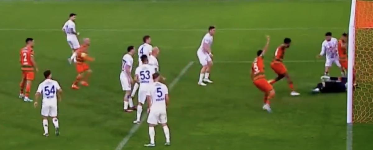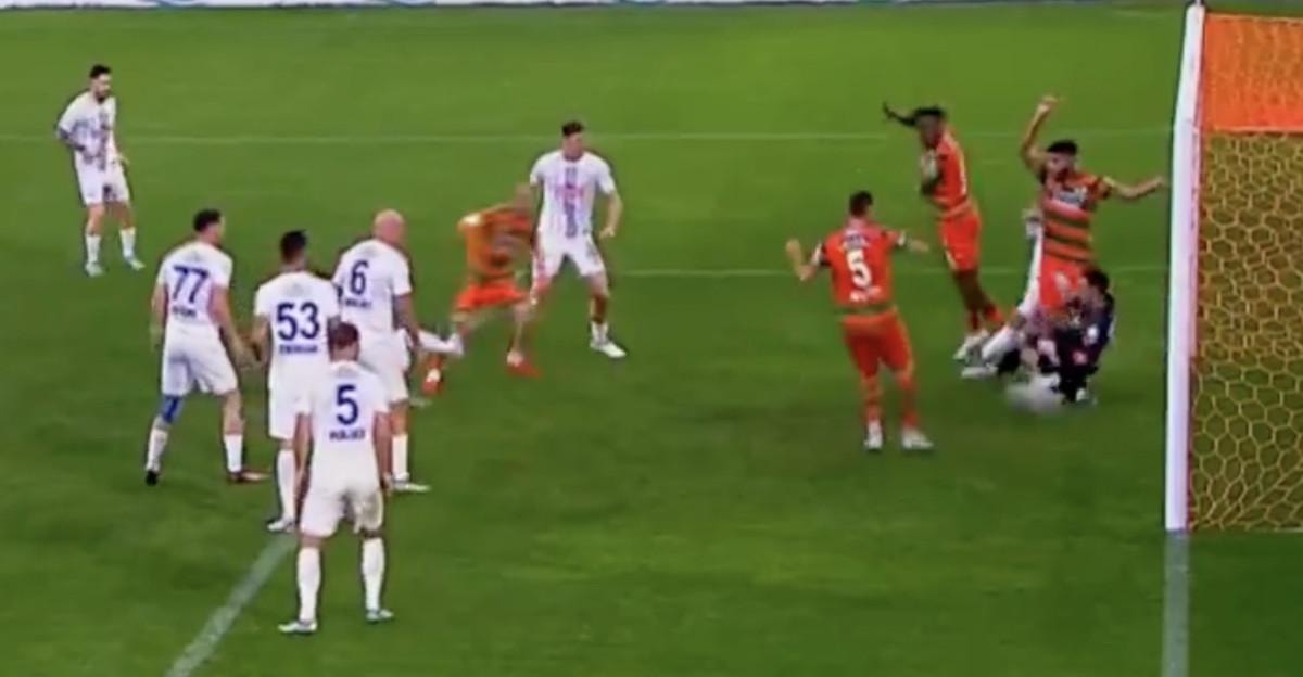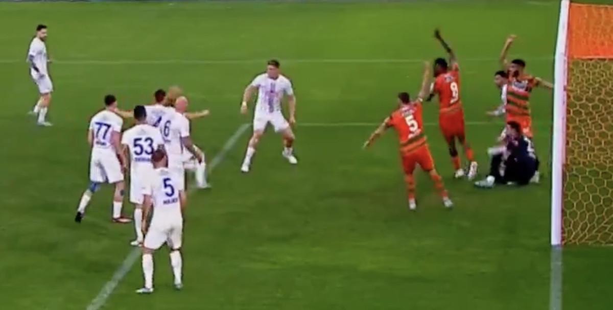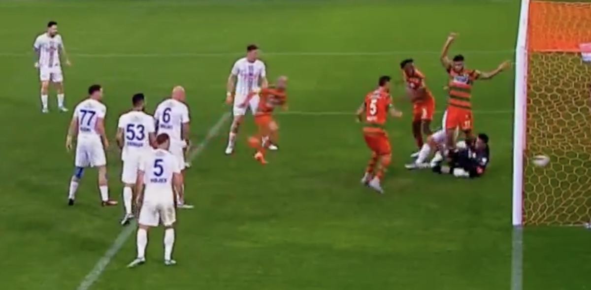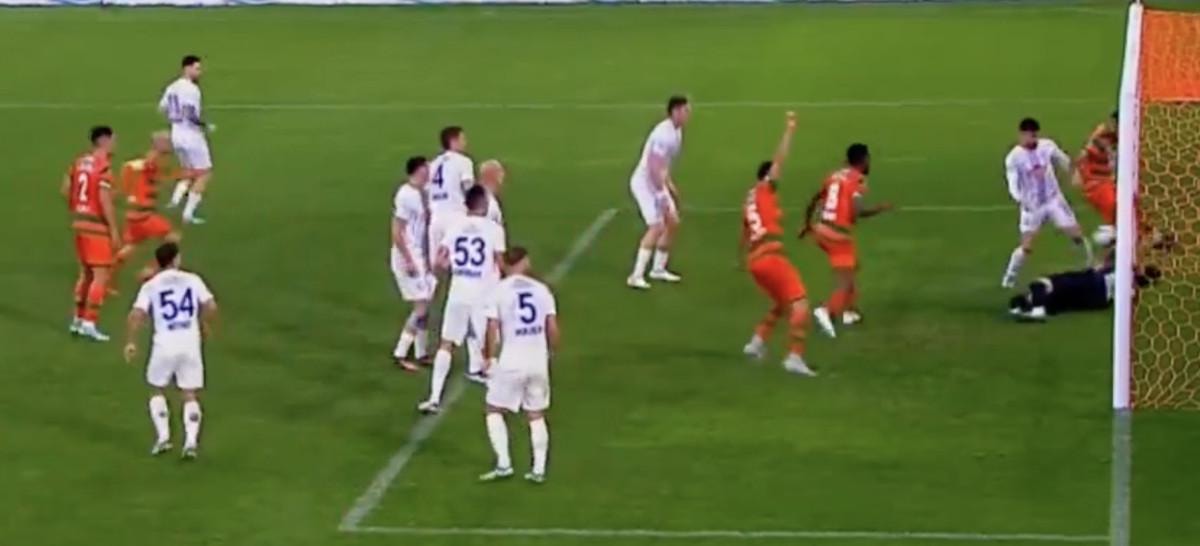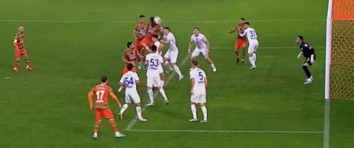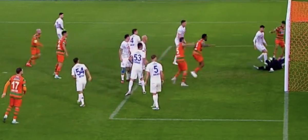 VAR'dan karar gelmeyince orta hakem Ali Şansalan pozisyonu izledi ve Alanyaspor'un golünü verdi.