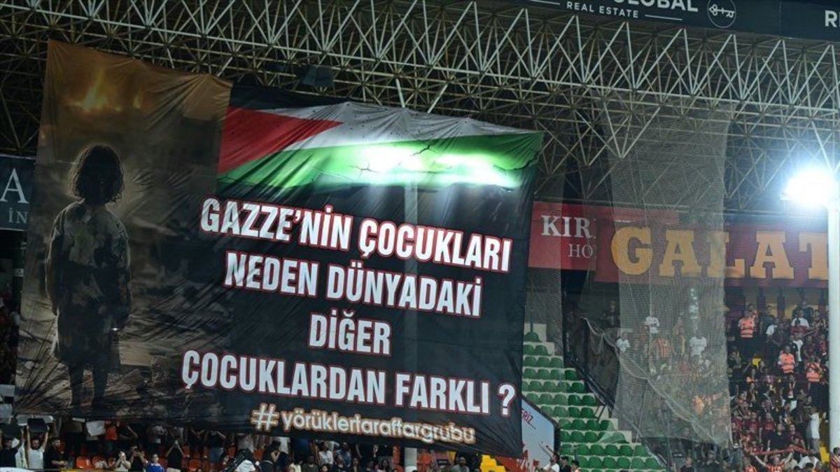 - Alanyaspor taraftarları, Galatasaray maçı öncesinde Gazze için pankart açarak dikkat çekti.