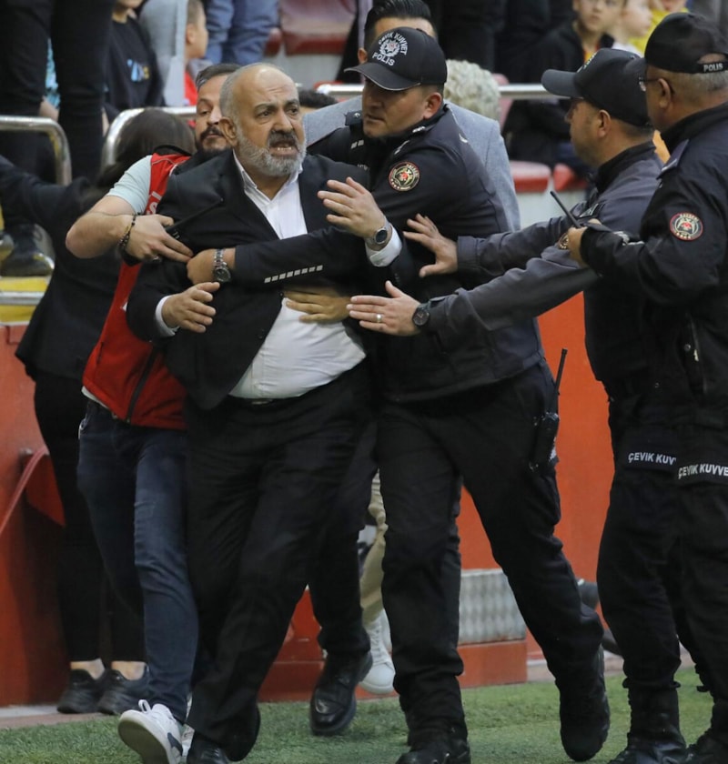 Kayserispor Başkanı Ali Çamlı, Konyaspor maçında kırmızı kart sonrası Halil Umut Meler'e sinirlendi ve sahaya girmek isterken, güvenlik güçleri tarafından dışarı çıkarıldı.