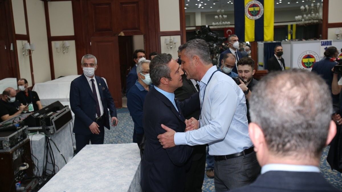 Salonda başkan Ali Koç ile görüşen Saran’ın başkana sarılması dikkati çekti.
