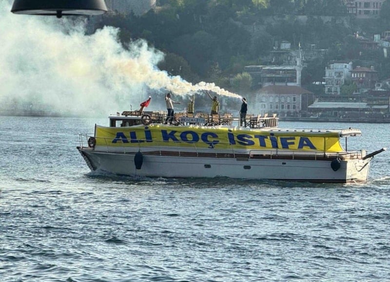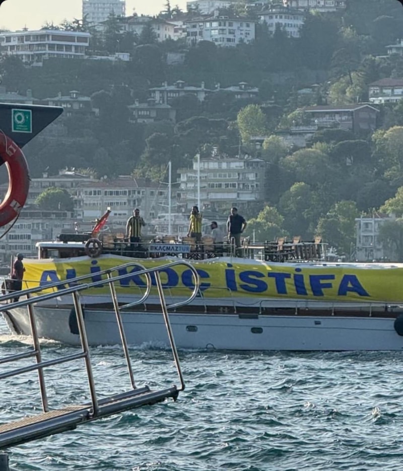 Fenerbahçeli bir grup taraftar, İstanbul Boğazı'nda "Ali Koç istifa" pankartı açarak Koç'un yalısının önünden tekne ile geçti. O anlar çevrede bulunan bir vatandaşın kamerasına yansıdı.