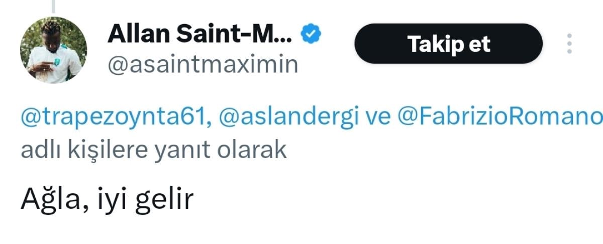 Allan Saint-Maximin ise "Fenerbahçe'nin 5 yıldızlı logosunun resmini yanıt olarak gönderdi.