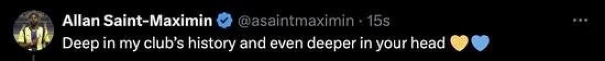 Fenerbahçeli futbolcu Allan Saint-Maximin ise 3 ay sonra bu gönderiye yorum yaptı. Fransız yıldız yapılan paylaşıma, "Kulübümün tarihinin derinliklerinde ve hatta senin kafanın derinliklerinde." sözlerini kullandı.