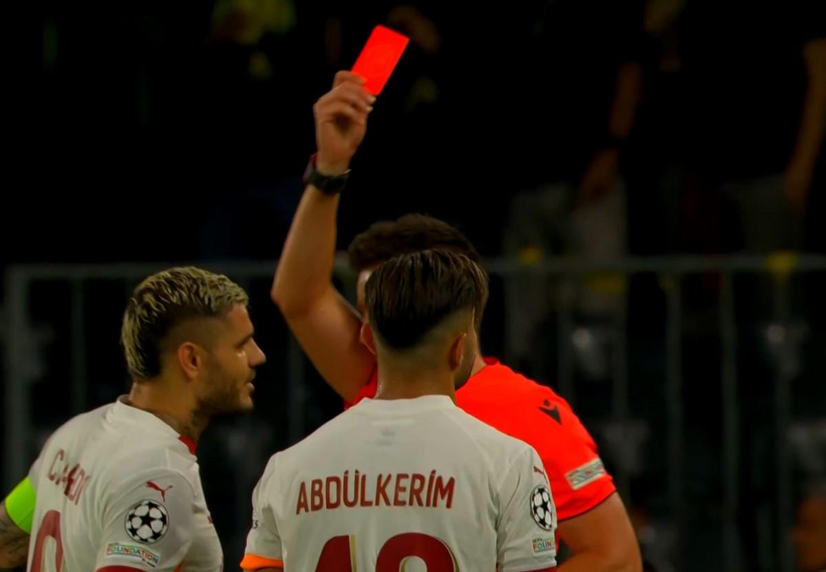 Alman hakem Daniel Siebert'in, Abdülkerim'in eline çarpan topta penaltıya hükmedip tecrübeli oyuncuyu ikinci sarıdan atması, Galatasaray cephesinde büyük tepkiyle karşılandı.