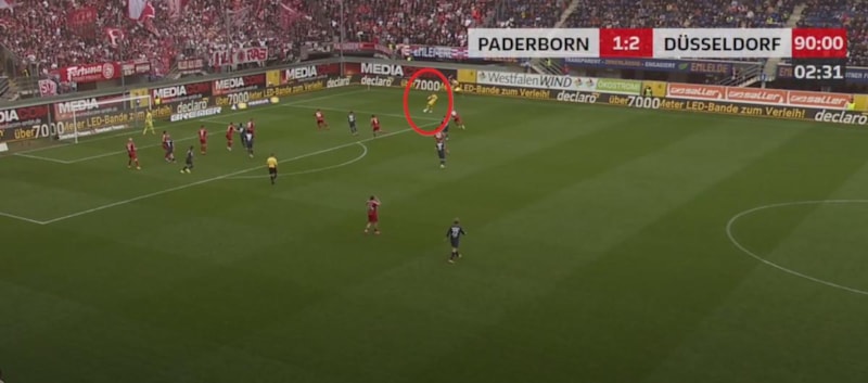 10 kişi kalan Paderborn'un kalecisi Manuel Riemann, Düsseldorf'a karşı kaleci oyunculuk yaptı ve son 15 dakikada sahada ayak basmadık yer bırakmadı. İzleyenleri şaşkına çeviren karşılaşma sosyal medyada gündem oldu.