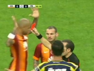 Galatasaray'ın 2-1'lik üstünlüğüyle sona eren mücadelede sarı-lacivertli takım 53. dakikada 10 kişi kaldı.