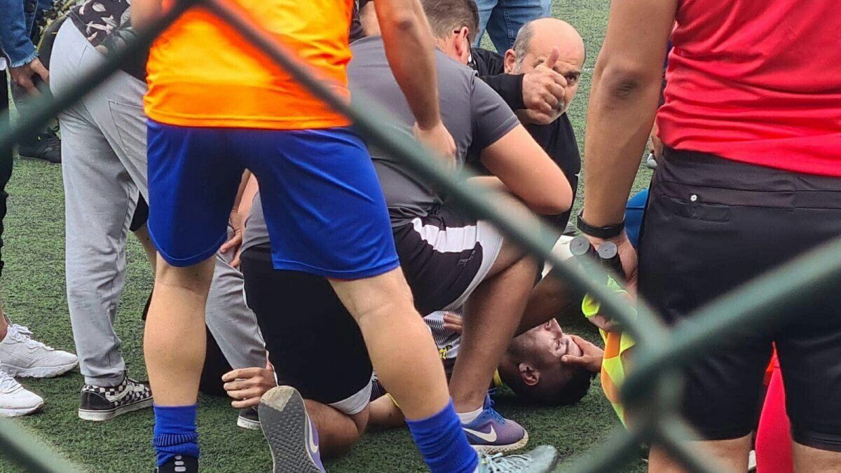 Talihsiz futbolcu statta ambulans bulunmadığı için özel araçla Atatürk Devlet Hastanesi'ne kaldırıldı.