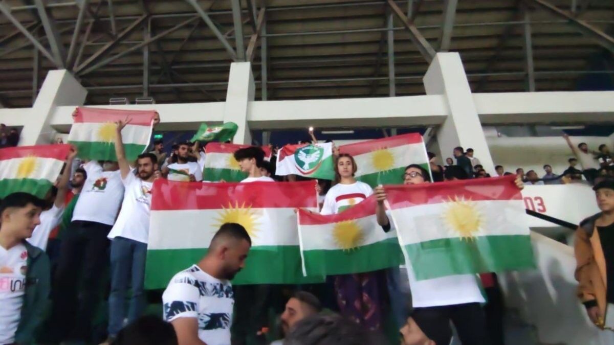 Amedspor'a ilişkin çok sayıda tepkinin geldiği görüntülerde, tribünlerde Kürdistan bayraklarının olduğu görüldü.