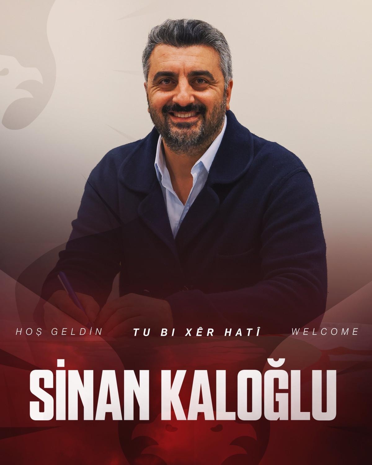 Amedsporumuza Hoş Geldin Sinan Kaloğlu. Profesyonel Futbol A Takımımızın teknik direktörlük görevi için Sinan Kaloğlu ile anlaşma sağlanmıştır. Yeni teknik direktörümüz Sayın Kaloğlu’na kulübümüze hoş geldin diyor; kendisine ve ekibine Amedsporumuzla birlikte başarılarla dolu bir sezon diliyoruz.