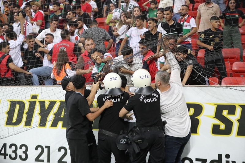 Diyarbakır'da taraftalar sahaya çok sayıda yabancı madde fırlattı.