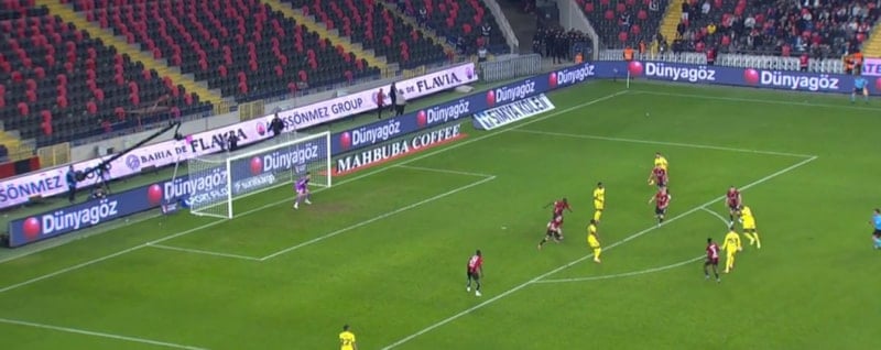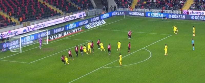 Ceza sahası dışı sağ çaprazda kazanılan serbest vuruşta topun başına geçen Talisca, oyuna girdikten 3 dakika sonra topu ağlara gönderdi.