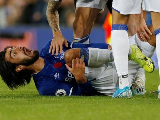 Karşılaşmanın normal süresinin son dakikalarına doğru Evertonlu futbolcu Andre Gomes, Heung-Min Son'un müdahalesi ile yerde kaldı.